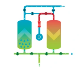Blower Zero Aire Kontsumoa Adsortzio Lehorgailuak aire konprimituaren aplikazioak 0°-tik beherako presio ihintz-puntua behar duenean erabiltzen dira. Lehorgailu birsortzaileak bi presio-ontziz osatuta daude. Bi ontziak lehorgarriz beteta daude. Ontzi bat aire konprimitutik hezetasuna kentzen ari da.