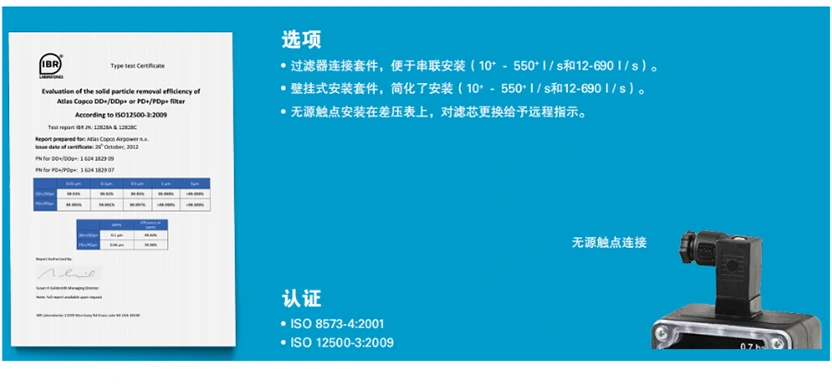 Airearen kalitate etengabea bermatzeko, zerbitzu-adierazle batek iragazkien funtzionamendu-orduen presio diferentziala eta mantentze-egoera erraz egiaztatzeko aukera ematen du. Urruneko alerta bat ere bidali dezake.