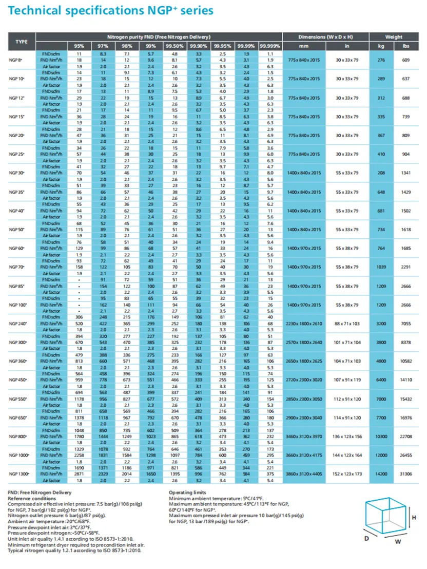 NGP Pressure Swing Adsorption Nitrogeno Sorgailuak % 95etik % 99rako nitrogeno garbitasuna eskaintzen du zure kalitate baldintzak betetzeko.