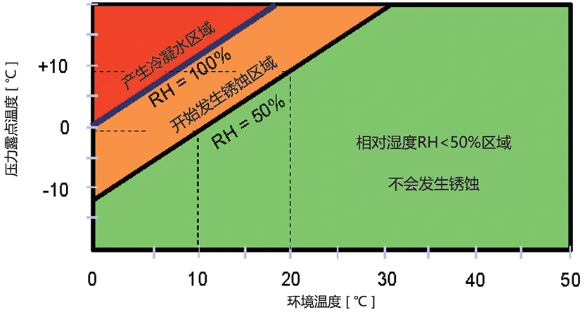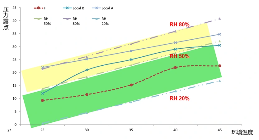 Beheko neurtutako datuetan erakusten den moduan, aire konprimituaren sarrerako presioa 7 bar-ekoa, sarrerako tenperatura 35 °C-koa, presio-ihintza-puntua 7 °C-ko eta azken irteerako tenperatura 25 °C-koa izanik, airearen hezetasun erlatiboa % 30ekoa da, kanalizazioen eta airea erabiltzen duten ekipoen korrosioa eraginkortasunez saihestuz.